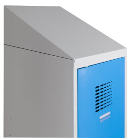 Šikmá strieška šírky 400 mm pre šatníkové skrine typ A035 pre zamedzenie odkladania predmetov na skrinku. Rozmery v x š x h = 200 x 400 x 500 mm. Jednoduchá montáž z vnútra skrine pomocou 4 skrutiek do pripravených otvorov (montážny materiál priložený). Farba šedá RAL 7035.