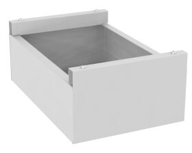 Zváraný sokel pre šatníkovú skriňu šírky 300 mm. Výška sokla 140 mm. Jednoduchá montáž z vnútra skrine pomocou 4 skrutiek do pripravených otvorov (montážny materiál priložený). Farba šedá RAL 7035.